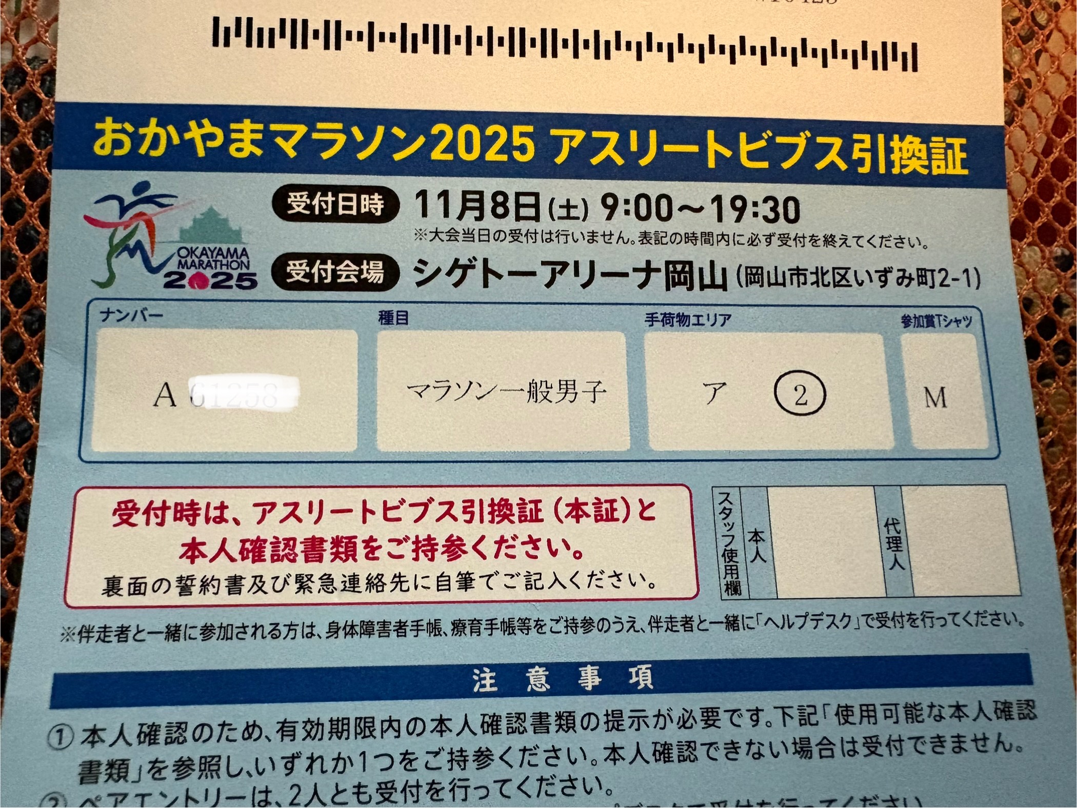 そのため、前日受付でのナンバーカード引換にも行けず、引換券がそのまま手元に残るという、少し寂しい週末になりました。
